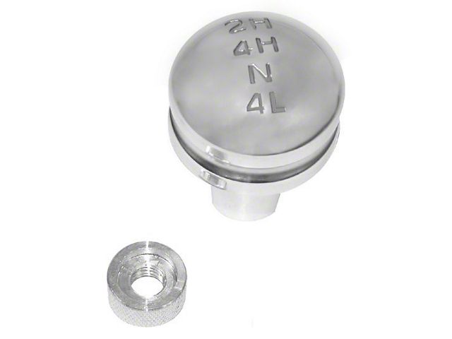 Key Features. Transform the look of your Jeep almost instantly with this Transfer Case Knob made of billet aluminum. It has the shift pattern etched in, so no matter how much abuse it takes, the design will never wear off. A highly polished finish and classic shape means the knob will look great in any rig, complimenting an otherwise stock setup or one that's been extensively customized. As a direct OE fit, you also don't have to worry about the knob coming loose or having to make modifications just to get it on.
