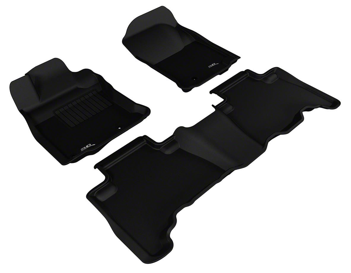 Top Quality Structure. The 3D MAXpider KAGU Series All-Weather Custom Fit Front and Rear Floor Liners are designed to provide exceptional protection and style for your vehicle's interior. Crafted with a non-slip rubber surface layer, they offer secure footing, preventing slipping during entry and exit. The carbon fiber embossed pattern not only adds a touch of sophistication to your vehicle but also enhances the liners' durability. These liners are designed to resist harmful elements such as water, mud, and debris, ensuring they maintain their pristine appearance and protect your vehicle's carpeting. With their sleek black design, these floor liners are a perfect combination of function and aesthetics, keeping your vehicle's interior looking sharp while safeguarding it from wear and tear.