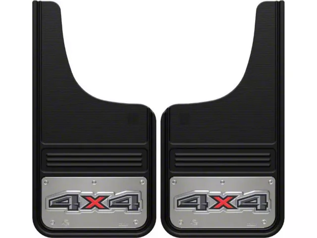 Premium Material Combination. The 12-Inch x 23-Inch Mud Flaps with a 4x4 Logo are a universal product designed to fit any vehicle. Precision-engineered from 304 stainless steel plate and incorporated with premium virgin rubber, these mud flaps are built to last and withstand any harsh weather conditions.