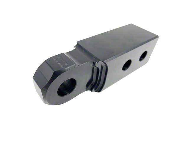 Description. Precisely made from 6061-T6 billet aluminum. Made to work with any brand 7/8" shackle, our Royal Hooks Shackle or Royal Show Hook. Designed not to only be extremely strong but stand out from your typical hitch receiver on the market. Fits your standard 2" hitch receiver and 5/8" pin. Has an 1.1 inch mounting tab w 7/8" hole to fit most popular shackles. 7/8" to 3/4" Delrin bushing included for tight fit to Royal Shackles and Show Hooks. Black anodize finish. Proudly Made in the USA