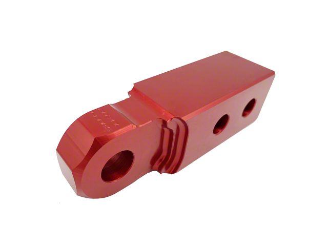 Description. Precisely made from 6061-T6 billet aluminum. Made to work with any brand 7/8" shackle, our Royal Hooks Shackle or Royal Show Hook. Designed not to only be extremely strong but stand out from your typical hitch receiver on the market. Fits your standard 2" hitch receiver and 5/8" pin. Has an 1.1 inch mounting tab w 7/8" hole to fit most popular shackles. 7/8" to 3/4" Delrin bushing included for tight fit to Royal Shackles and Show Hooks. Red anodize finish. Proudly Made in the USA