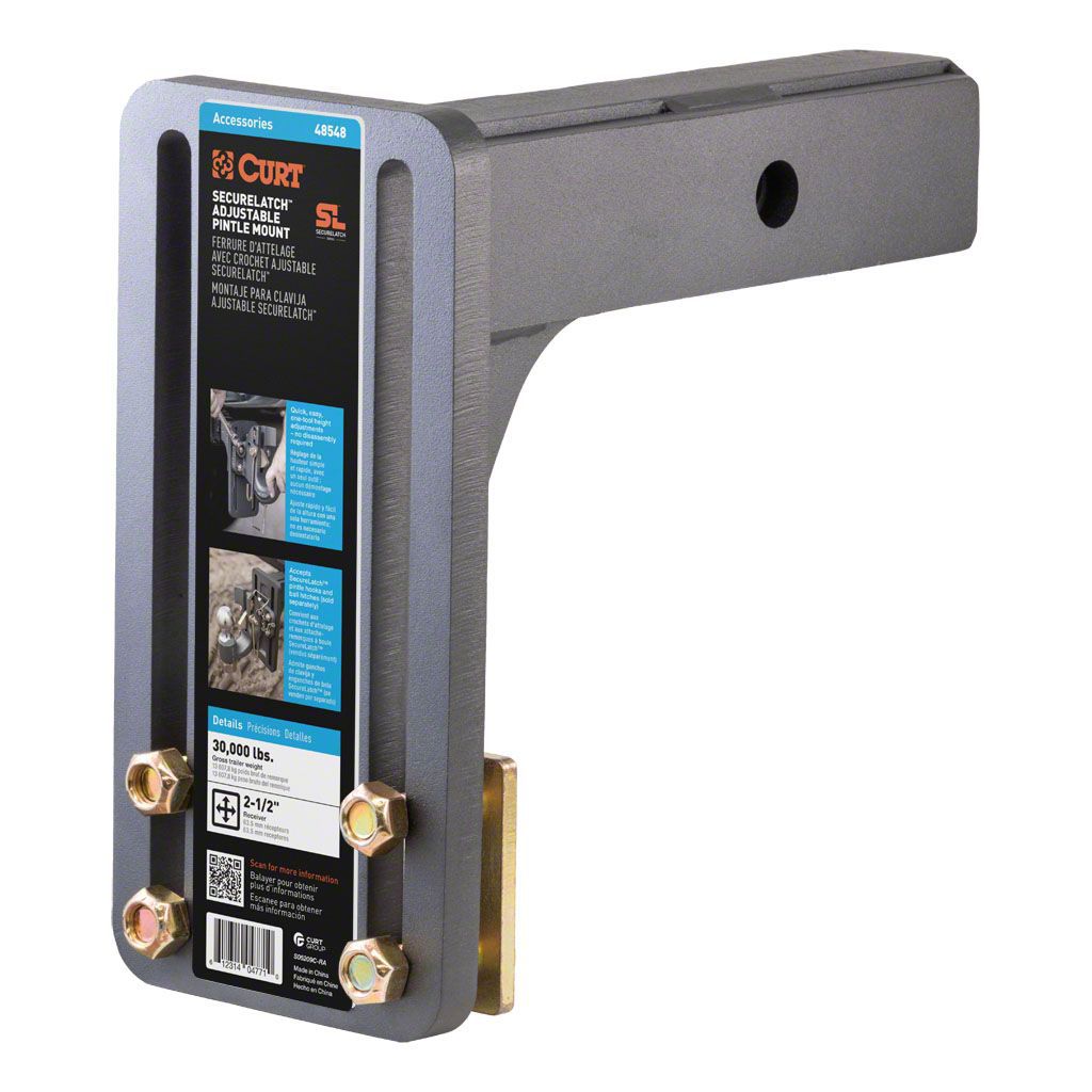 Tailoring Your Tow. The ingenious adjustable height feature integrated into the 2.50-Inch Receiver Hitch SecureLatch Adjustable Pintle Mount offers unparalleled versatility in establishing a seamless connection between your towing vehicle and trailer.