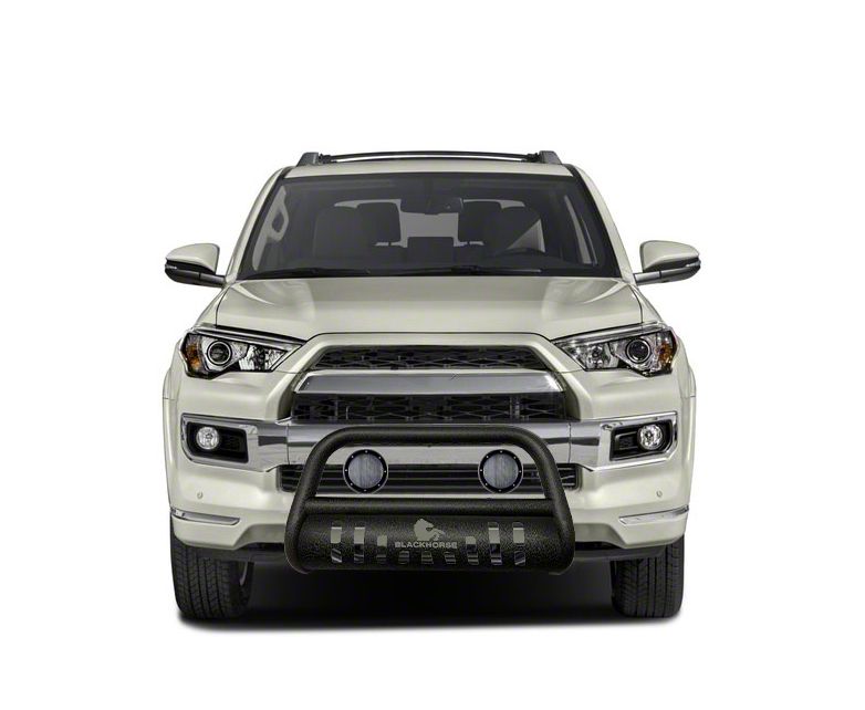 Protection. The main purpose of a Bull Bar with Skid Plate is to shield your 4'Runner's front end from potential harm brought on by collisions with animals or other objects. This bull bar was made from premium materials to serve as a sturdy shield, cushioning shock and reducing damage during off-road expeditions. It serves as an additional layer of protection for your 4-Runner.
