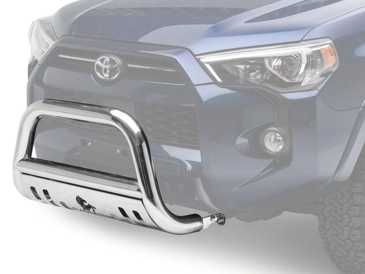 Protection. The front end of your 4-Runner is better protected with the Bull Bar with Skid Plate. It protects important parts like the radiator and front grille against strikes from pebbles, twigs, and road debris. This is particularly helpful for off-road trips when there is a greater chance of undercarriage damage.