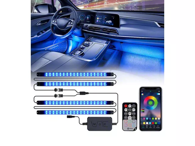 Installation. Putting this Celestial Series Double Row RGB LED Interior Light Set with Bluetooth on your ride is easy and requires no drilling.