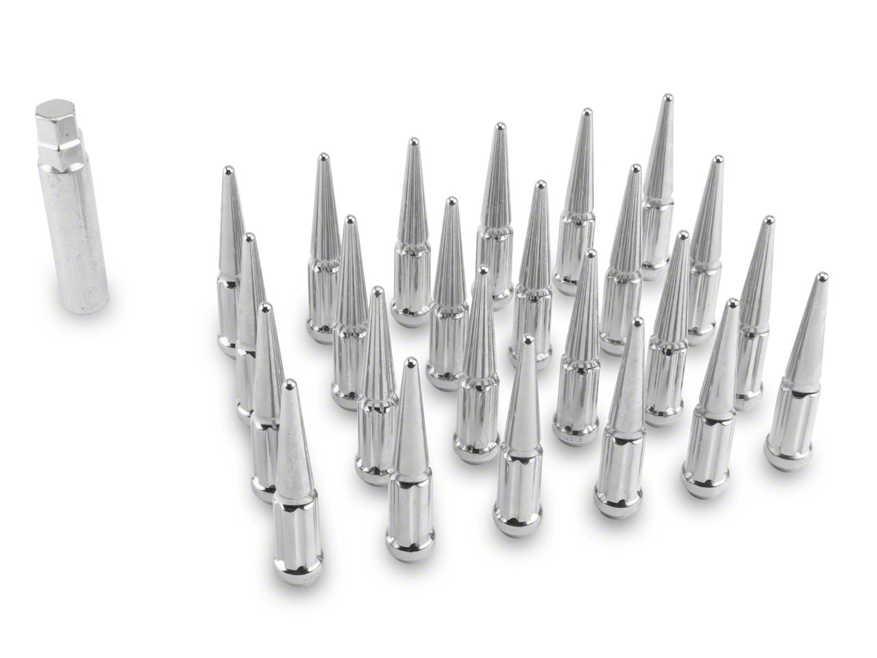 Steel Construction. With a length of 1.90 inches, the Spike 6-lug nut kit is guaranteed to be the perfect size for your 6-lug wheel. In fact, it even comes with a superior 12 mm x 1.50 thread for unbeatable functionality. The lug nut kit's 24 spike lug nuts are also tailored specifically for the most rigorous, challenging off-road adventures and can take serious abuse thanks to their long-term durability. Constructed from high-strength steel and finished with an eye-catching chrome, these lug nuts won't hold you back while you take on demanding conditions and treacherous terrains.