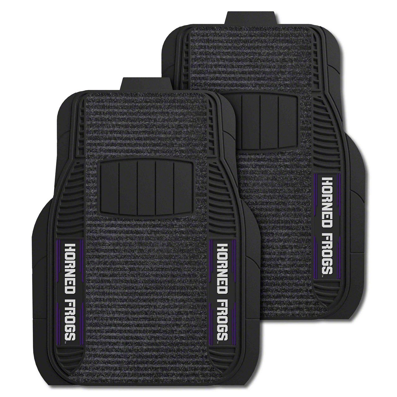 Show Your Team Spirit. Add a touch of pride to your vehicle with the Deluxe Front Floor Mats featuring the Texas Christian University Horned Frogs logo. Perfect for alumni and fans, these mats not only show off your support but also protect your vehicle's interior from dirt and wear. The black color scheme with the bold team logo enhances your car's interior while showcasing your school spirit.
