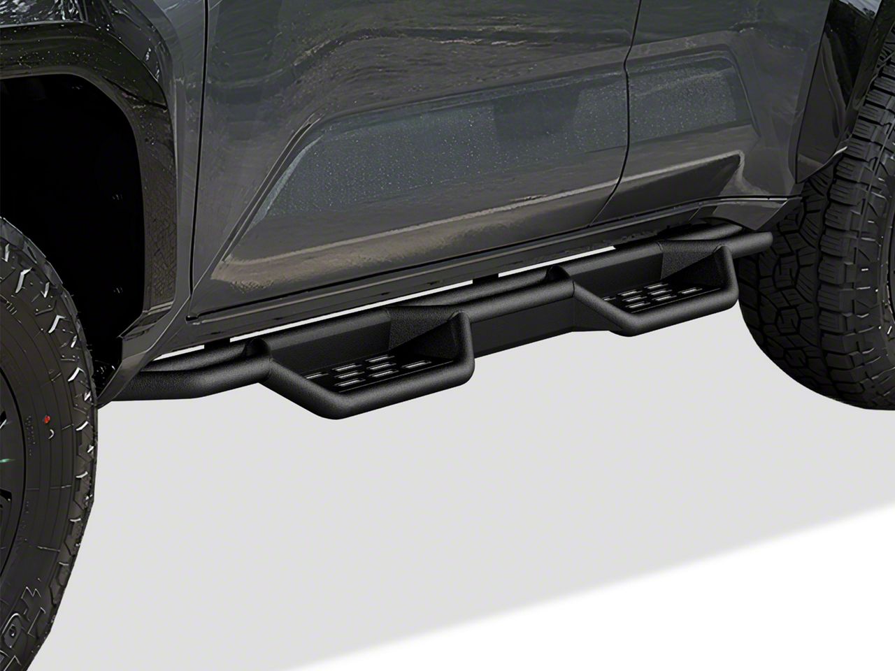 Functional Off-Road Styling. The Drop Style Door to Door Nerf Side Step Bars are designed to provide safe, stylish, and functional access to your 2025 to 2026 Toyota 4Runner. With a unique drop-down step configuration, these side bars feature a rugged design that enhances both the usability and appearance of your off-road vehicle while offering added side protection.