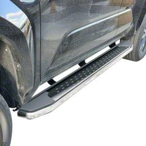 Construction and Appearance. Built with ultra-lightweight extruded aluminum, these running boards offer a solid yet weight-efficient structure. The mirror-polished chrome finish adds a refined, high-end appearance while also providing resistance against wear and corrosion. Raised black traction points are integrated into the design to improve stability and grip, especially in wet or muddy conditions.