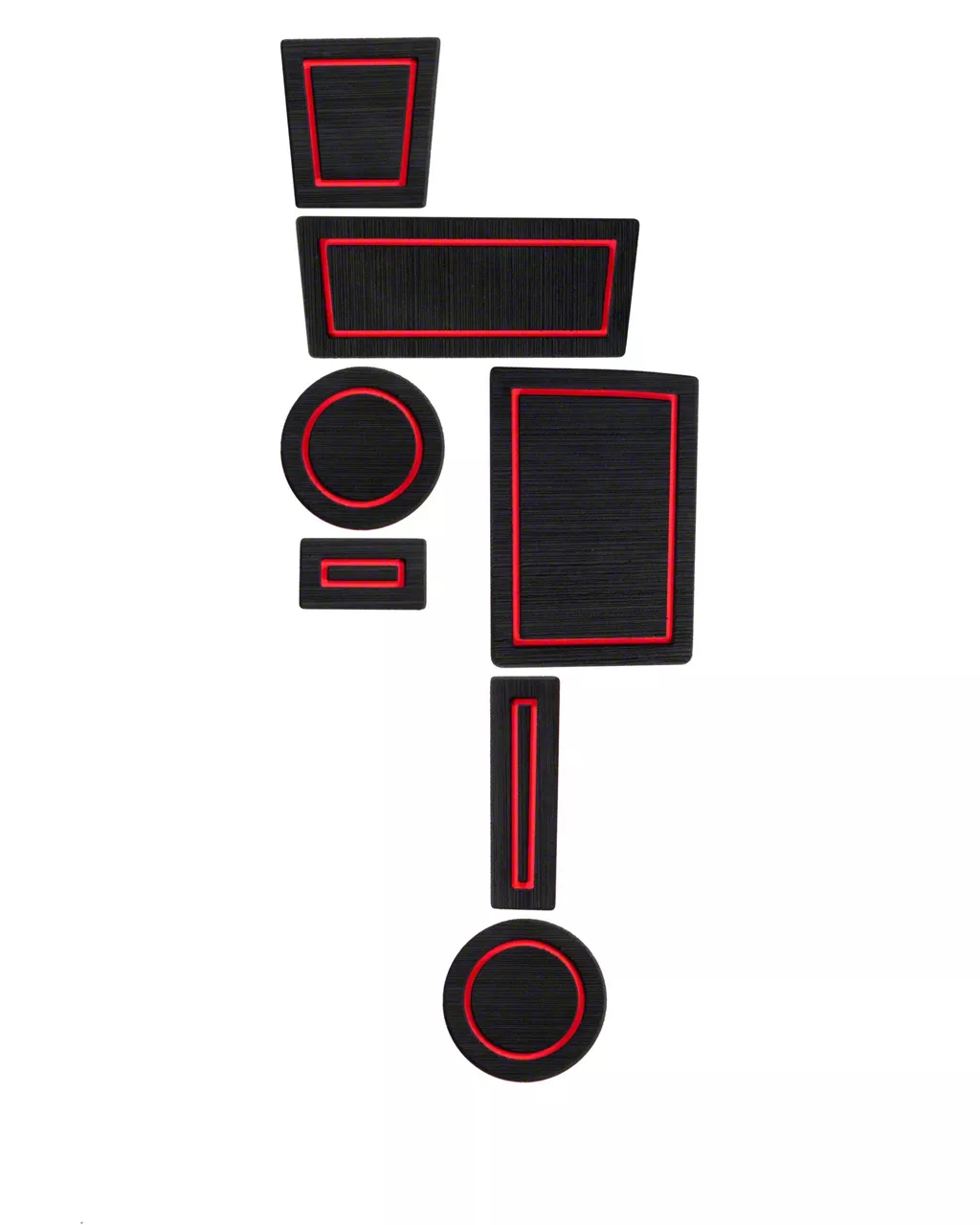 Construction and Appearance. Each insert features a dual-layered design with a matte black base and matte red finish highlights, combining visual appeal with soft cushioning. The foam construction absorbs minor spills and prevents items from rattling in the console, helping maintain a clean and quiet driving experience.