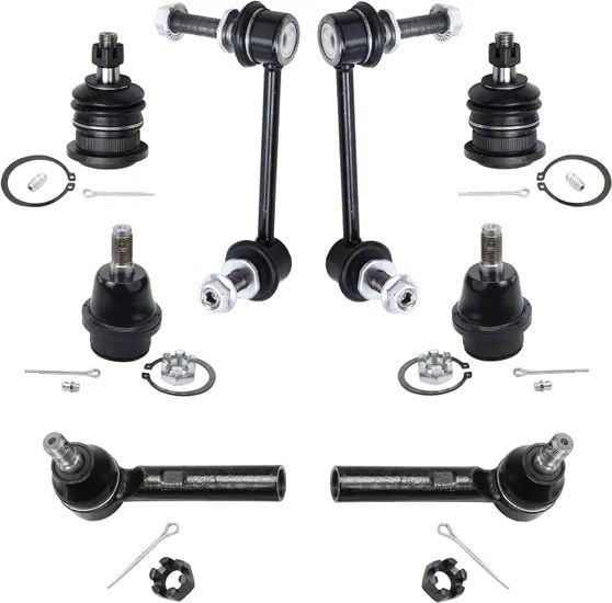 Heavy-Duty Construction. Crafted from high-strength steel and premium-grade materials, the Front Ball Joints with Sway Bar Links and Tie Rods are built to withstand demanding driving conditions. Their robust design resists wear and tear from daily use, off-road terrain, and heavy loads.