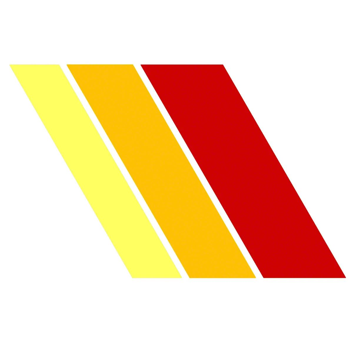 Glossy Heritage Stripes. These Glossy Heritage Stripes decals are perfect for adding a touch of retro style to your vehicle. Featuring a classic 80s look vibe, they come in light yellow, golden orange, and dark red colors. Sold as a pair to suit both the driver and passenger sides, these die-cut decals are designed to last and enhance your vehicle's appearance.