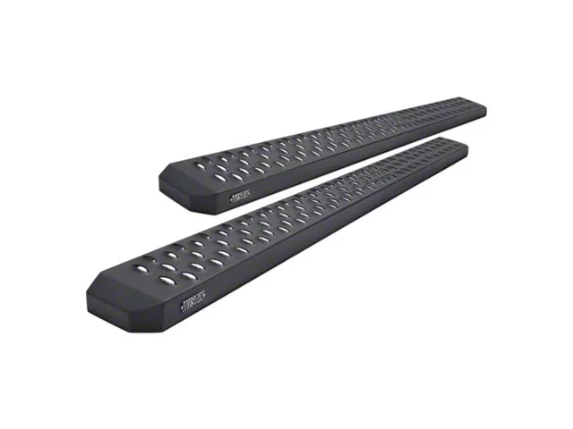 Reliable Stepping Area. Grate Steps Running Boards are the perfect way to improve your vehicle's appearance and safety. Featuring a 6 1/4-inch wide step surface, 1/4-inch high-tread depth and 68-inches length, these running boards provide a comfortable place to stand when entering or exiting your car. The serrated edges help keep your feet from slipping, ensuring to keep you safe at all times.