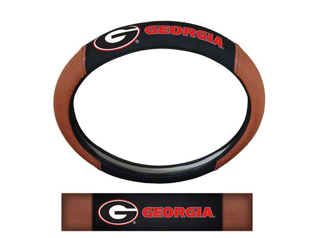 Application. This steering wheel cover is a universal fit, designed to fit most standard steering wheels. It is ideal for those looking to add a touch of style and comfort to their vehicle while displaying their University of Georgia pride.