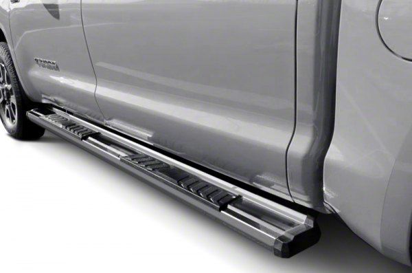 Stock Style Steps. Made for the Toyota 4Runner Trail, SR5 and TRD Off Road models, these Running Boards come in pairs with a polished chrome finish. Built from stainless steel with a polyethylene step area, these running boards come in the stock style and is sized 72 by 12 by 9 inches.