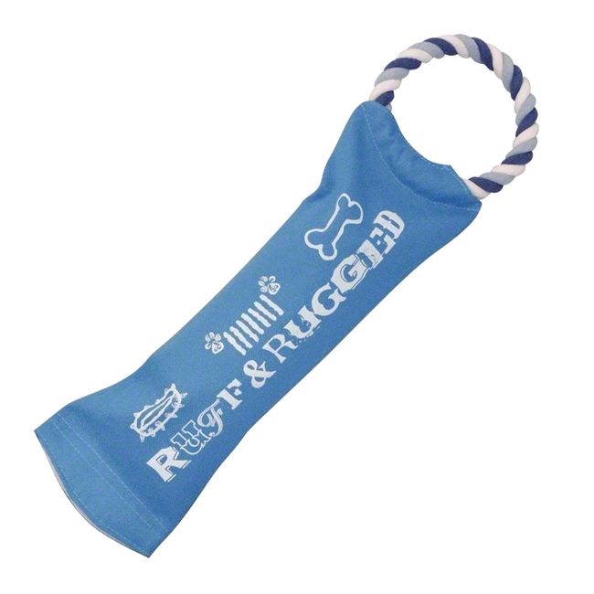 Whether your furry friend is big or small, the heavy-duty ring is durable enough to hold up to strong games of tug-o-war. Tough yet charming images of a spike collar, bone, and Toyota grille with paw prints for headlights are printed in navy on one side of the toy, along with the phrase RUFF & RUGGED, and www.allthingsToyota.com.