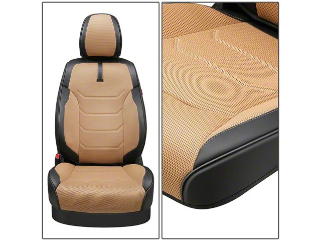 Comfortable Interior Upgrade. The Sport Series Front Seat Covers provide a stylish and practical way to protect and enhance your vehicle's interior. Featuring a sporty two-tone beige and black design, these seat covers bring a refined and dynamic look to your cabin while protecting your original seats from wear, stains, and fading. They are ideal for daily drivers, commuters, or anyone looking to refresh their vehicle's interior.
