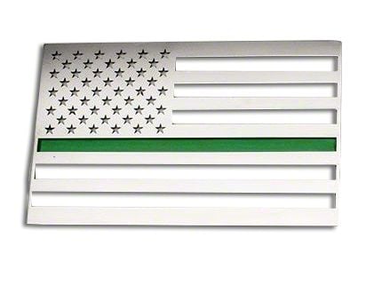 Application. The polished ACC Stainless Steel American Flag Emblem with Thin Green Line fits Toyota 4Runner models.