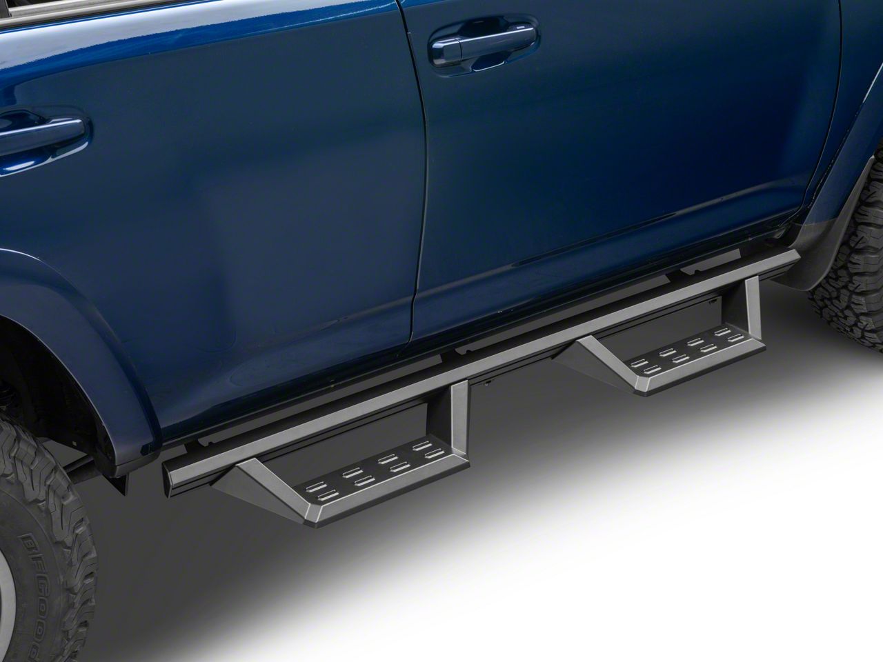 Step Up Your Function and Style for Trail or Daily Driving. These STX Drop Side Step Bars offer easier access to your lifted 4Runner while enhancing its aggressive styling. With wide drop steps, they provide secure footing when entering the cab or loading rooftop gear. Their rugged look pairs well with overland builds and urban off-roaders alike.
