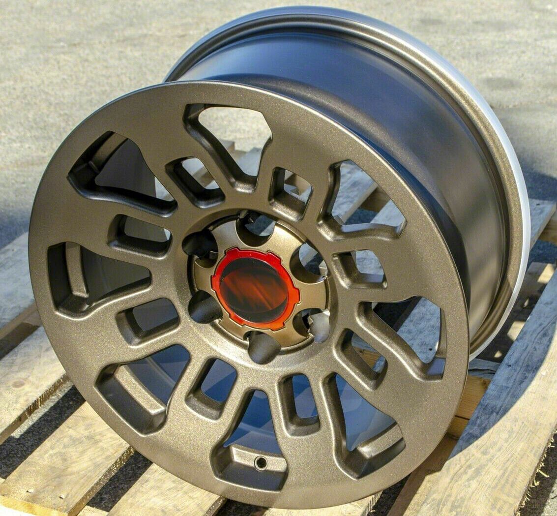 Application. This Store Brand TR2 Matte Bronze 6-Lug Wheel; 17x9; 0mm Offset, with a backspace of 5 Inch, 127mm and bolt pattern of 6 x 139.7mm (6 x 5.5-Inch), is designed to provide not only a striking visual appeal but also to contribute significantly to the alignment and driving stability of the vehicle. Its specifications ensure a precise fit with the vehicle model, enhancing the overall driving experience. Built to fit the 2010-2024 4Runner, this wheel is sold individually.