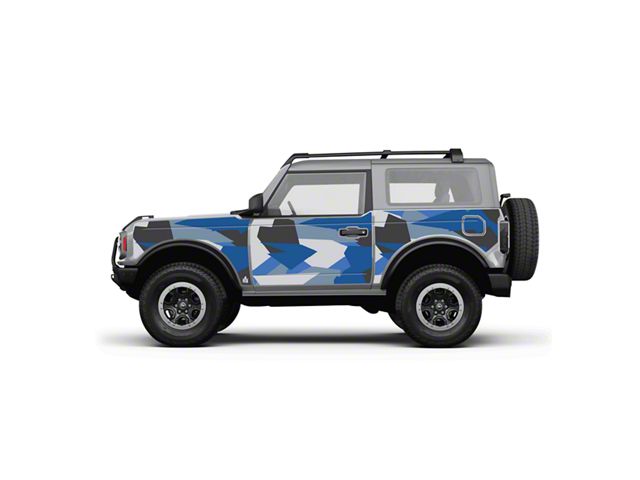 Striking Camo Pattern. Elevate the protection and style of your Bronco 2-Door with the 4x4 Attitude Action Shield Body Armor; Blue Splinter Camo. This rugged body armor is designed to shield your vehicle from scratches, dings, and off-road hazards, while adding a unique aesthetic touch with its striking blue splinter camouflage pattern. Made from high-quality materials, the Action Shield Body Armor is built to withstand the challenges of off-road driving. It acts as a resilient barrier against scratches, dings, and environmental elements.