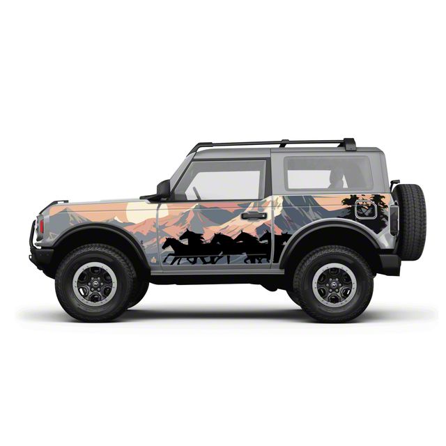 Best in Vehicle Protection. Elevate your Bronco 2-Door's protection with the 4x4 Attitude Action Shield Body Armor, showcasing a striking mountains design. This premium body armor is meticulously crafted from high-quality materials in the USA, ensuring top-notch durability and longevity. It's UV-protected to resist fading and wear from sun exposure, maintaining its rugged good looks.