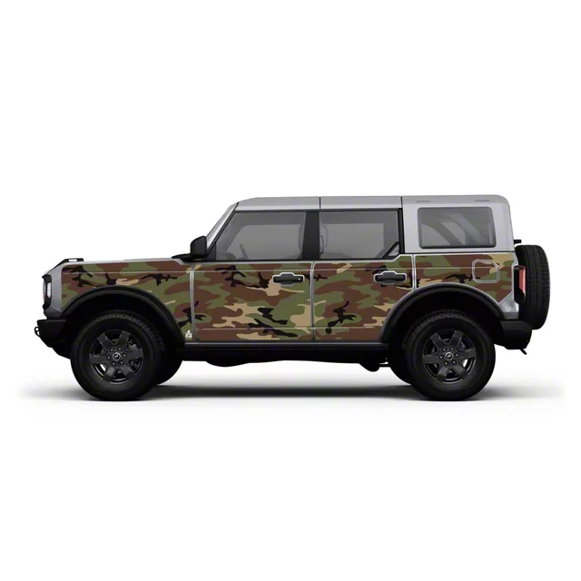 Adventurous Look. Embrace the wild with the 4x4 Attitude Action Shield Body Armor; Woodland Camo, boasting a Woodland Camo pattern that reflects your Bronco's readiness for any terrain. Constructed to shield your car's exterior from scratches, dings, and the bruises of off-road excursions, this body armor is as tough as the trails you'll conquer. Made from a blend of high-quality materials, it withstands the elements, branches, rocks, and the rigors of your adventurous lifestyle.