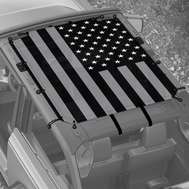 Effective Protection. The 4x4 Attitude Sunshade is designed to offer effective UV-ray protection for your vehicle, reducing interior heat and protecting upholstery from sun damage. Furthermore, the eye-catching Black and White USA Flag design adds a unique touch of style while keeping your vehicle cool and comfortable.