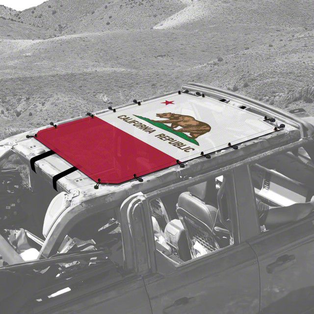 Construction and Appearance. This sunshade is made from premium vinyl mesh, ensuring durability and longevity. It features a striking California Flag design, printed using high-definition, UV and scratch-resistant, eco-friendly outdoor inks, adding a unique touch to your vehicle. Proudly made in the USA, this product combines quality and style.