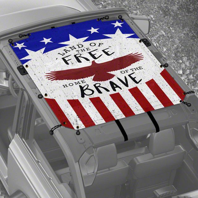 Effectively Reduce Interior Heat. The 4x4 Attitude Sunshade is designed to offer effective UV-ray protection for your vehicle, reducing interior heat and protecting upholstery from sun damage. Furthermore, the eye-catching Land of the Free design adds a unique touch of style while keeping your Ford Bronco 2-Door cool and comfortable.