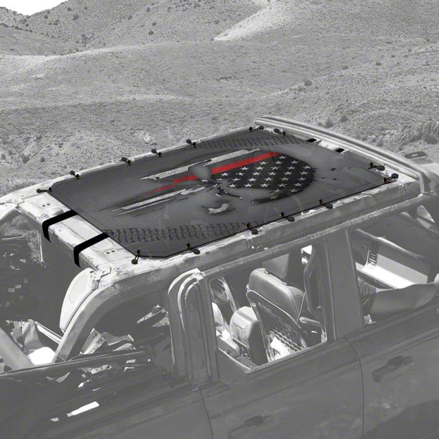 Construction and Appearance. This sunshade is made from premium vinyl mesh, ensuring durability and longevity. It features a striking Punisher Red Line design, printed using high-definition, UV and scratch-resistant, eco-friendly outdoor inks, adding a unique touch to your vehicle. Proudly made in the USA, this product combines quality and style.