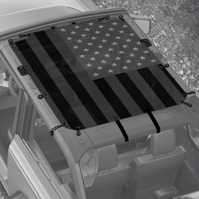Customizable. The USA Grayscale design of the 4x4 Attitude Sunshade adds a touch of style to your vehicle's interior. Its sleek and modern appearance complements the Bronco's aesthetic, while the grayscale color scheme provides a neutral backdrop that seamlessly integrates with any interior decor.