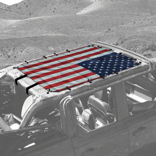 Construction and Appearance. This sunshade is constructed from high-quality materials that ensure durability and longevity. It features a striking USA Live Flag design, adding a patriotic touch to your Bronco. The materials used are UV and scratch-resistant, maintaining their look and functionality over time. The sunshade is compatible with both hard and soft tops, making it versatile for any Bronco owner.