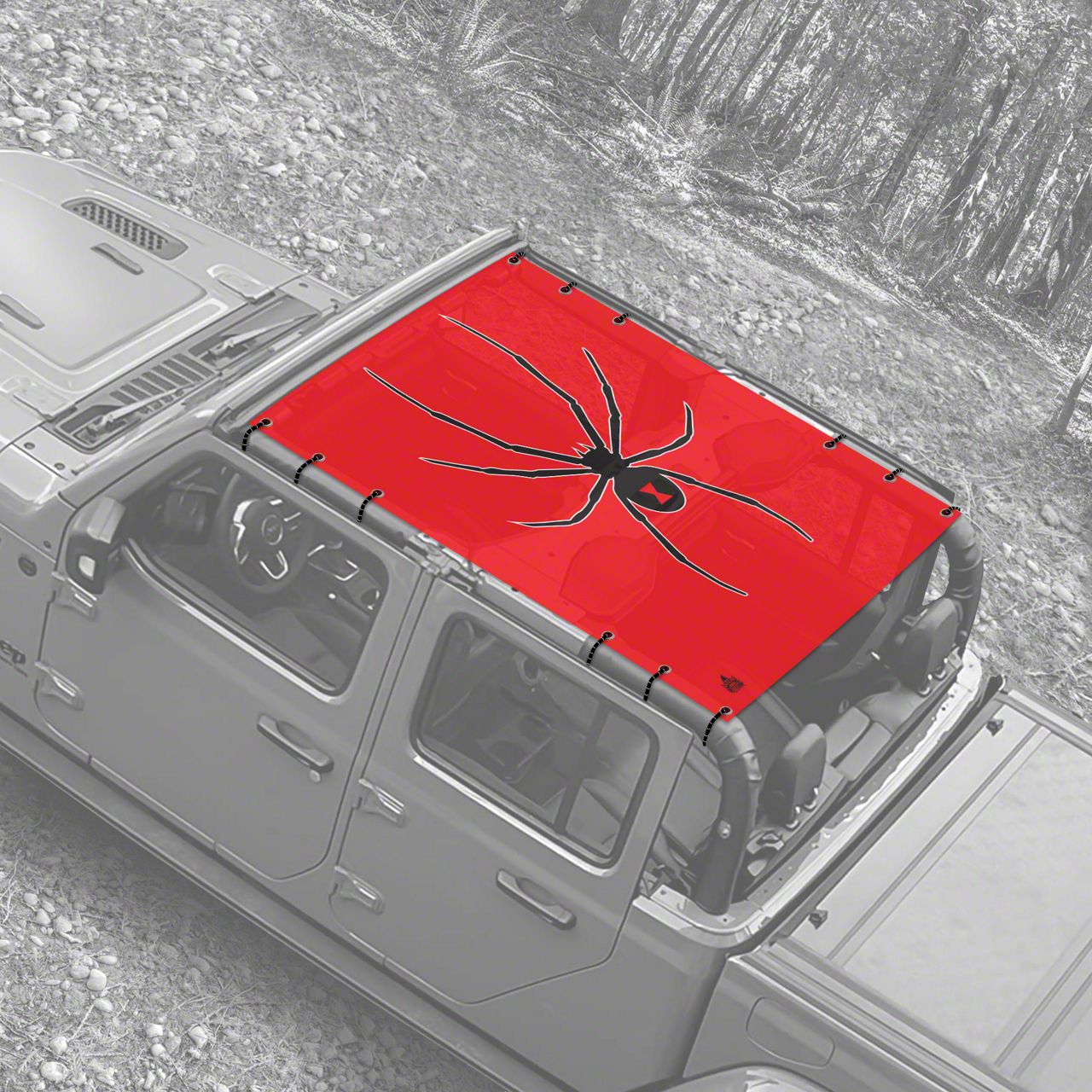 Smallest Mesh. Featuring the smallest mesh show-through design, the 4x4 Attitude Sunshade comes with a striking Black Widow pattern that adds a unique touch to your vehicle. Designed to serve as a UV shield, this sunshade ensures that you and your passengers stay cool and comfortable during sunny outdoor adventures.