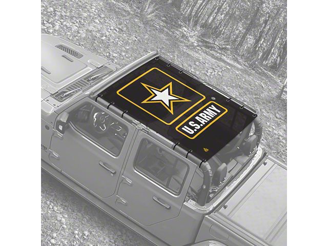 Salute Our Troops. Express your appreciation to our troops with the 4x4 Attitude Sunshade with the US Army logo design. This product is a high-quality sunshade that protects against the sun while reducing airflow and wind noise. It's perfect for open top-down driving letting you enjoy fresh air during warm summer days.