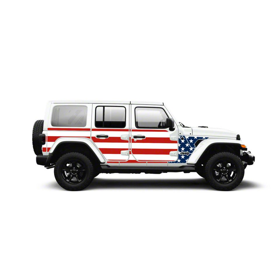 Patriotic Flair. Show off your patriotism while protecting your Jeep with the 4x4 Attitude Action Shield Body Armor; Patriot USA. Sporting a striking Patriot USA design, this body armor not only shields your vehicle but also makes a bold statement. The high-resolution graphics are UV-protected to ensure they don't fade over time, letting your patriotism shine through for years to come. Crafted from heavy-duty materials, the Action Shield Body Armor is engineered to withstand the harshest of terrains and weather conditions.
