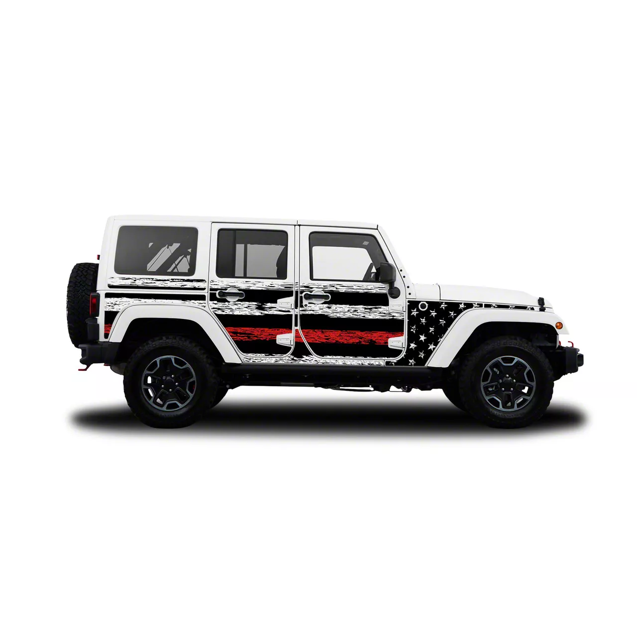 Application. The Blue Patriot USA Distressed Red Line 4x4 Attitude Action Shield Body Armor is constructed to accurately fit the 2007-2018 Jeep Wrangler JK 4-Door models.