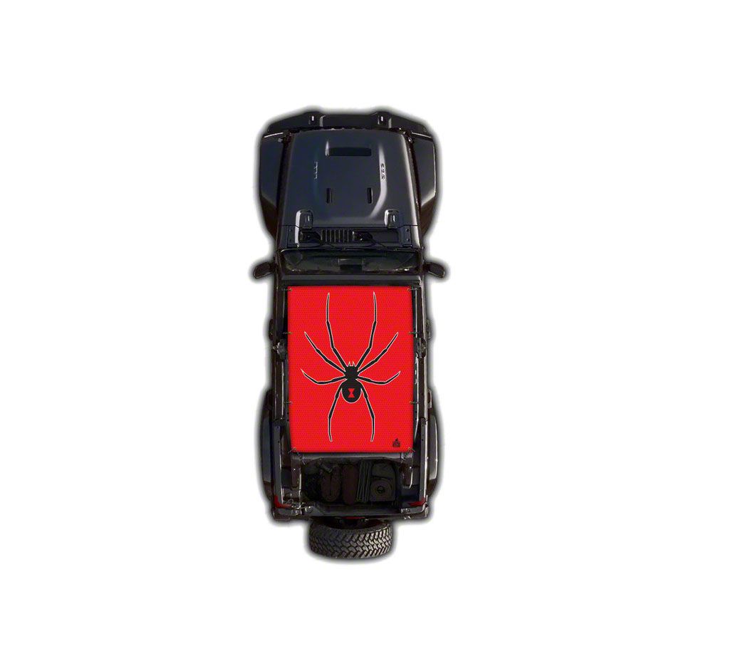 Stylish and Functional. The 4x4 Attitude Sunshade (Black Widow) is a premium sunshade with a unique Black Widow design, combining style and functionality. It has minimized mesh show-throughs, ensuring maximum sun protection while still allowing airflow for that open-air driving sensation. Additionally, it is fully compatible with both Jeep JL hard tops and soft tops, providing versatility and convenience for all Jeep enthusiasts.