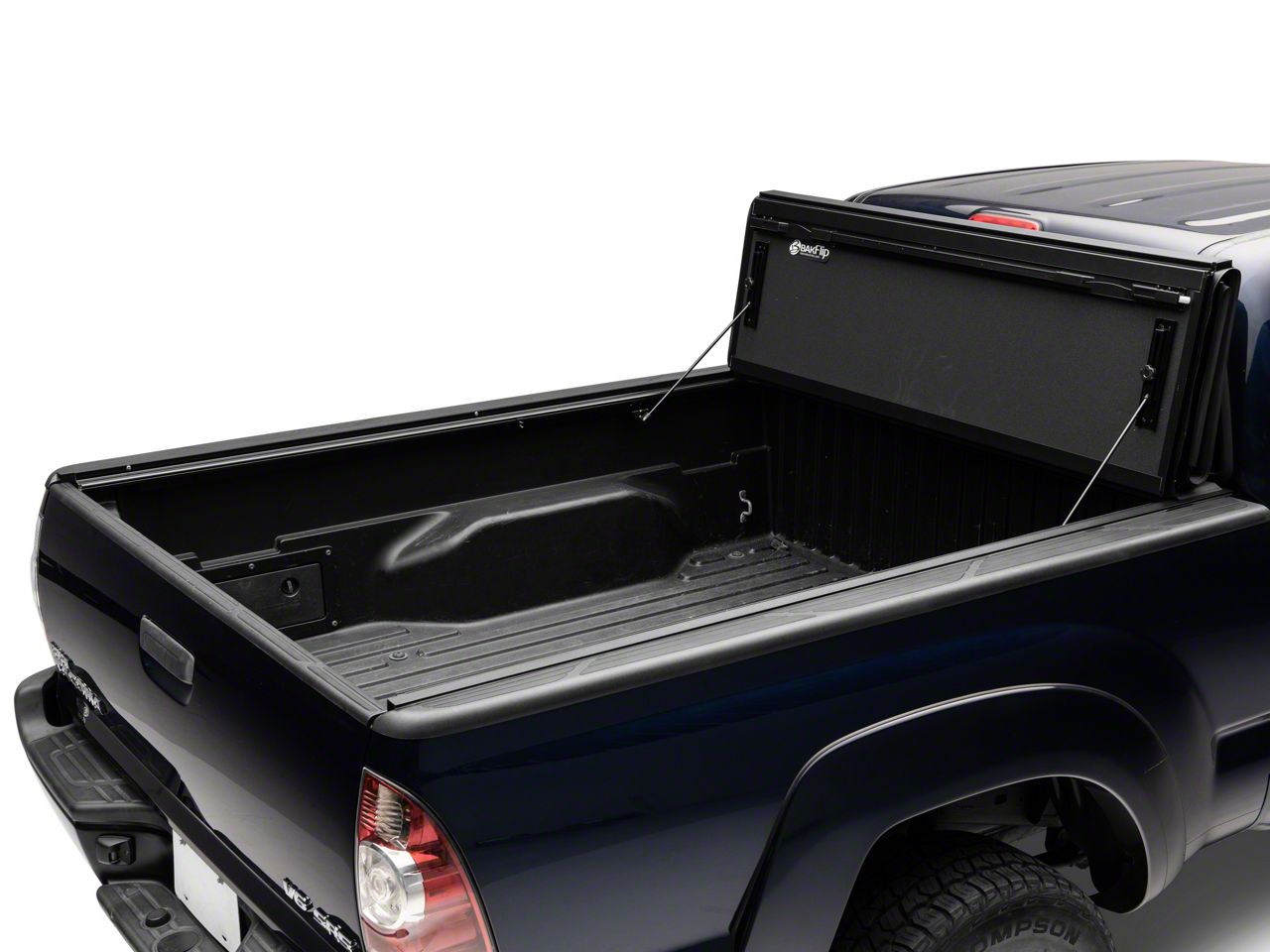 Three-Panel, Tri-Fold Design. The BAK Industries BAKFlip MX4 Tonneau Cover comes with a tri-fold, three panel design. This design allows incremental access to your Tacoma's bed for added security. Once open, this tonneau secures using a built-in buckle-lock system, or two prop rods.