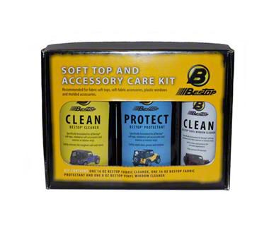Thorough Vinyl Protection. Give your soft top roof and side windows the love and care they need with this Bestop Soft Top Cleaner and Protectant Package. Complete with a vinyl cleaner, window polish, and protectant fluid that will provide extra durability and longer material life to your soft top assemblies. This package is easy to use and is best applied 1 hour after washing your whole assembly.