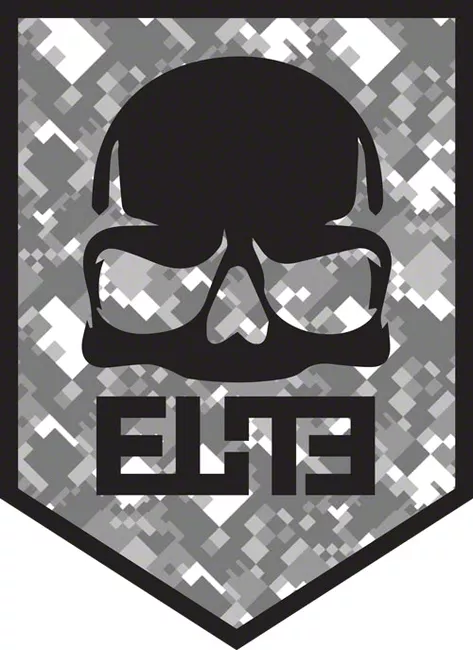 Our exclusive vinyl "ELiTE" decal with a black skull and digital camo background measures 5x6.75" inches and is as tough as your Jeep. Slap this decal anywhere on your vehicle (we don't recommend the windows!) or apply it to a skateboard, laptop, or tool box.