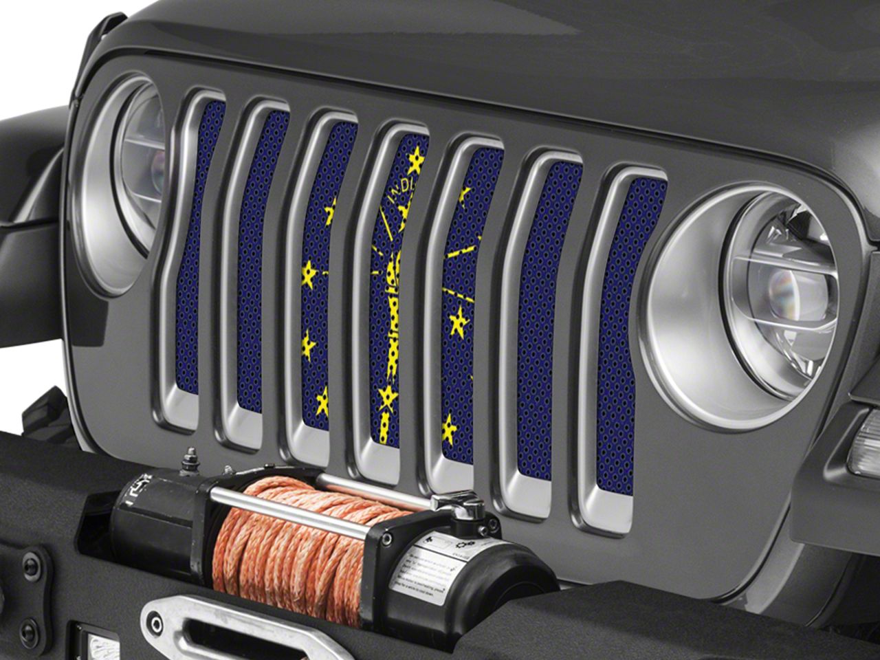Patriotic Custom Styling. The Under the Sun Inserts Grille Insert allows you to showcase your pride with a bold Indiana State Flag design. Engineered for a precise fit, the Under the Sun Inserts Grille Insert enhances your Wrangler's front-end appearance while protecting the radiator from debris. It offers a simple way to personalize your Jeep with durable, eye-catching style.