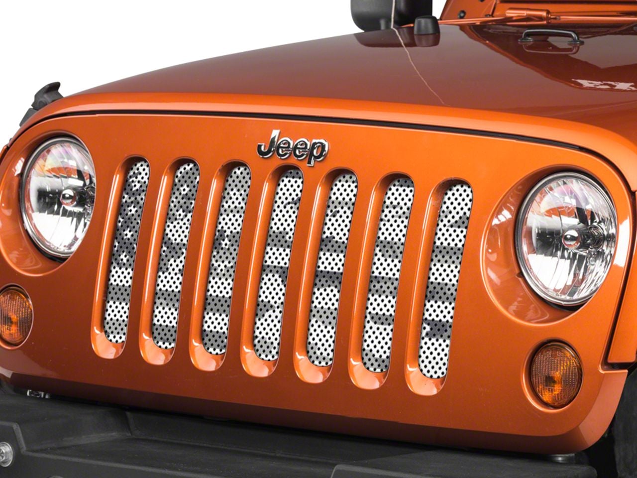 Amazing Design That Lasts. Each grille insert is printed with high quality, vibrant ink that will last for years without fading or chipping no matter what weather or road conditions your Jeep is exposed to.