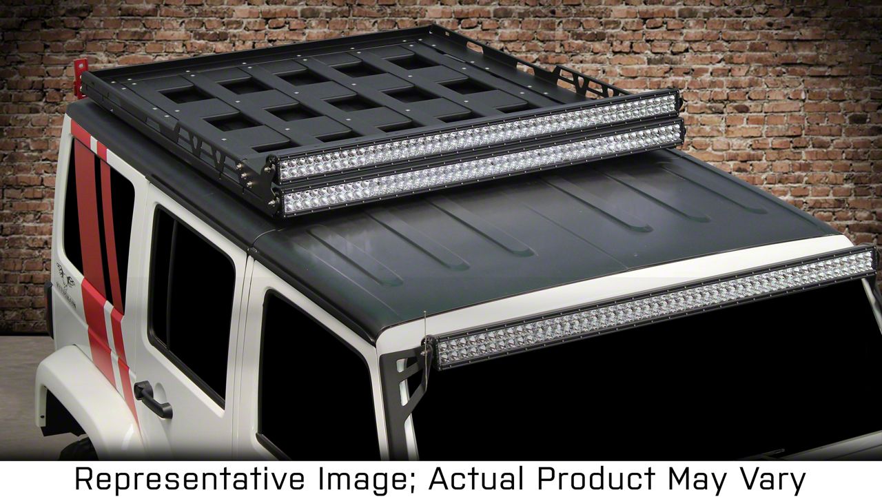 Application. This VPR 4x4 Roof Rack; Bare Metal fits 2007-2018 Jeep Wrangler JKs.
