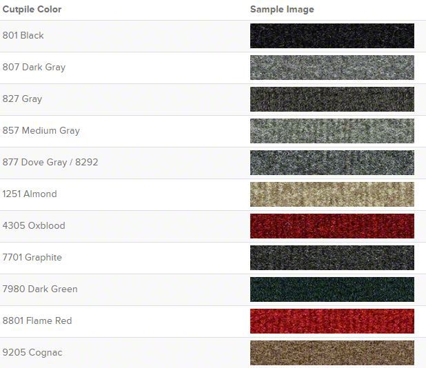 Complete Cutpile Die Cut Carpet Front and Rear Floor Mats (87-95 Jeep Wrangler YJ)Find parts that fit my vehicle