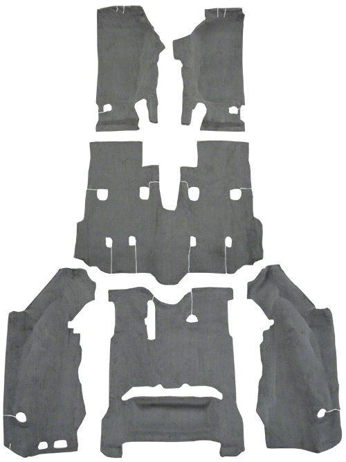 Interior Restoration and Comfort. The ACC Cutpile Carpet is specifically tailored for 2007-2010 Jeep Wrangler JK 4-Door models, providing a complete and direct replacement for the vehicle's original flooring. This carpet set, featuring a molded design, fits perfectly into the contours of the Jeep, offering a seamless installation. The light gray finish adds a fresh and clean look to the vehicle's interior, enhancing both its appearance and comfort.