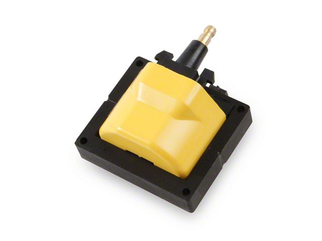 Description. Engineered with optimized low resistance, high turns ratio windings around an M36 high silicone magnetic steel E-core for higher energy and voltage outputs. Results in quicker starts, improved idle quality, crisper throttle response and more high RPM power. Compatible with late model GM computer controlled remote mount HEI systems. Direct bolt-in, plug-in replacement. Can also work with CD ignition systems. Special high temperature epoxy resists shock and vibration, while increasing thermal conductivity. Brass coil wire contact increases energy transfer and resists corrosion better than aluminum. Comes complete with new mounting hardware. High dielectric strength ACCEL yellow over molded housing. Output is 48,000 volts with 0.2ohms resistance.