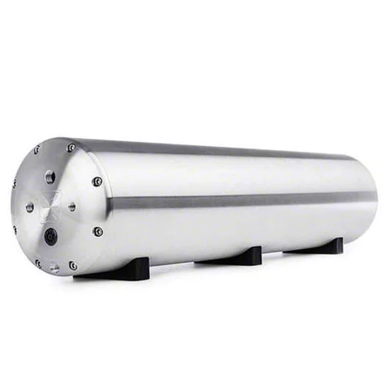 Construction and Appearance. Crafted from precision-machined aluminum, the Endo-VT features a modular, bolted design that ensures a leak-free experience without the need for welding. Its raw aluminum finish offers a sleek and modern look, suitable for various vehicle interiors or trunk setups. The tank's dimensions are 29.312" in length and 6.625" in both height and diameter, making it a compact yet substantial addition to your air suspension system.