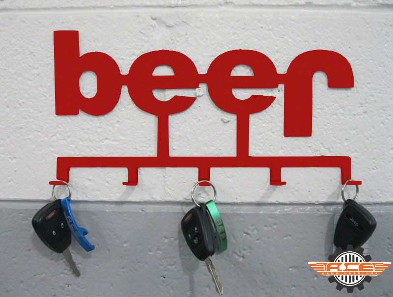 THE FAMOUS ACE BEER/JEEP T-SHIRT DESIGN IS NOW A KEYCHAIN HOLDER. MADE FROM .060 THICK MILD STEEL, IT MEASURES 12" X 6.5", HAS 5 KEYCHAIN HOOKS. GOOD FOR 8 HP!