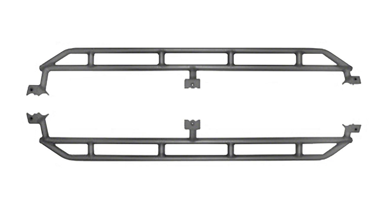 NOTE: Rubicon models beginning with 2026 may have a modified frame with an additional plate/bracket on the front portion of the tire deflectors that interferes with the Rock Slider installation. We will not accept returns over this issue so contact us PRIOR to ordering to determine whether or not your Jeep will accept our Rock Slider. We strongly recommend that you do NOT modify the tire deflector as it's a safety item on your Jeep.